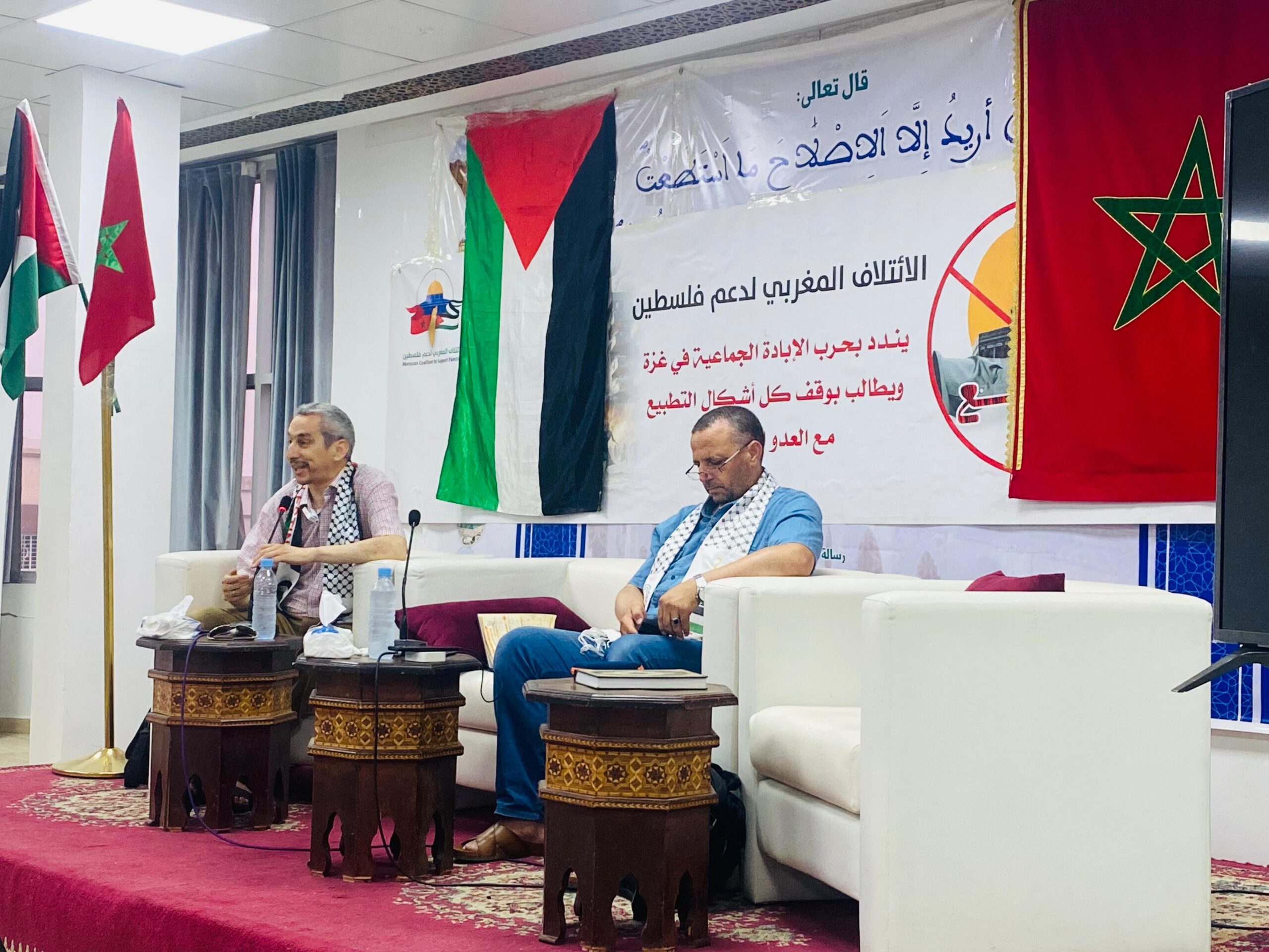 نظم الائتلاف المغربي لدعم فلسطين يوم الاحد 28 يوليوز بالمركب التربوي فاطمة الفهرية بفاس ،محاضرة في موضوع ( طوفان الاقصى: واجب النصرة و تحدي مواجهة التطبيع ) اطرها الاستاذ عزيز هناوي الكاتب العام لمجموعة العمل الوطنية من اجل فلسطين و الكاتب العام للمرصد المغربي لمناهضة التطبيع.